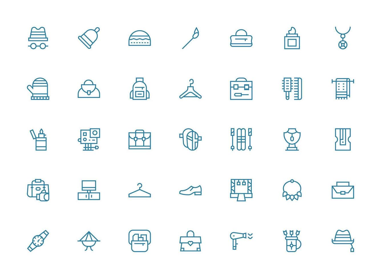 Accessories Design Icons featuring 35 in Regular Clean Line Style Balanced Icon Set for Functional Design Free Vector