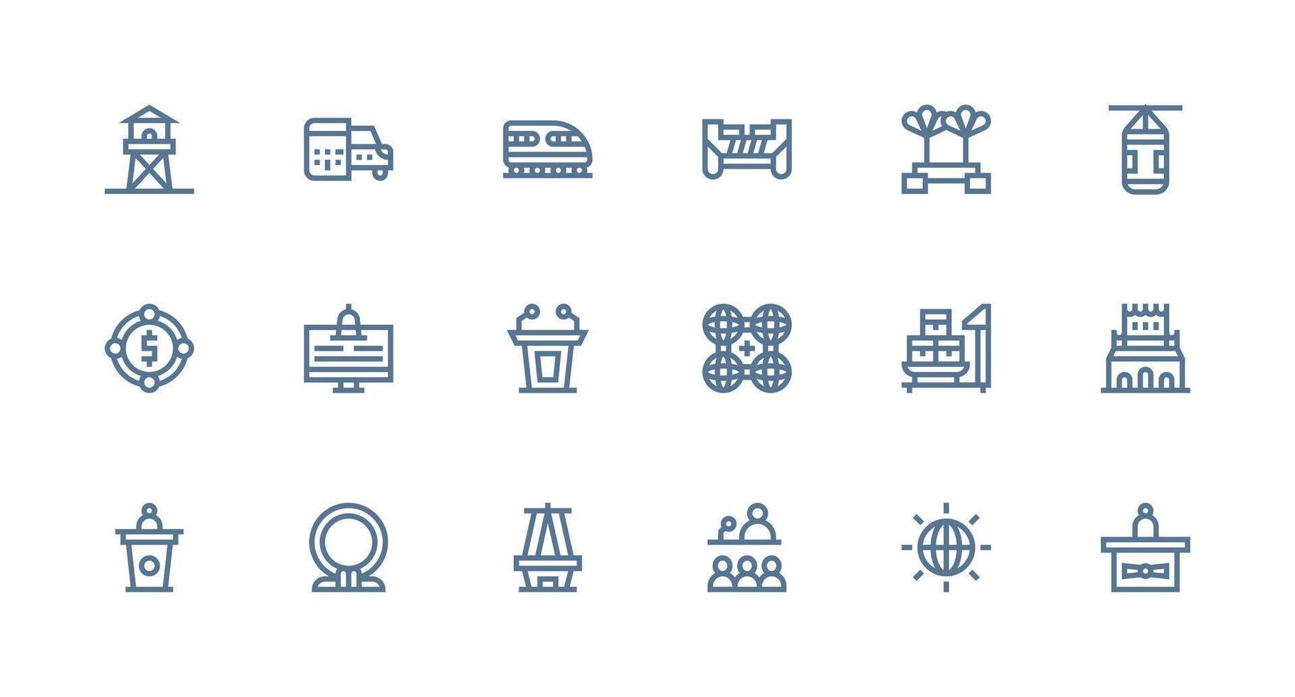 Platform featuring 18 Icons in Strong Stroke Line Design Complete Icon Set for Mobile Apps Free Vector