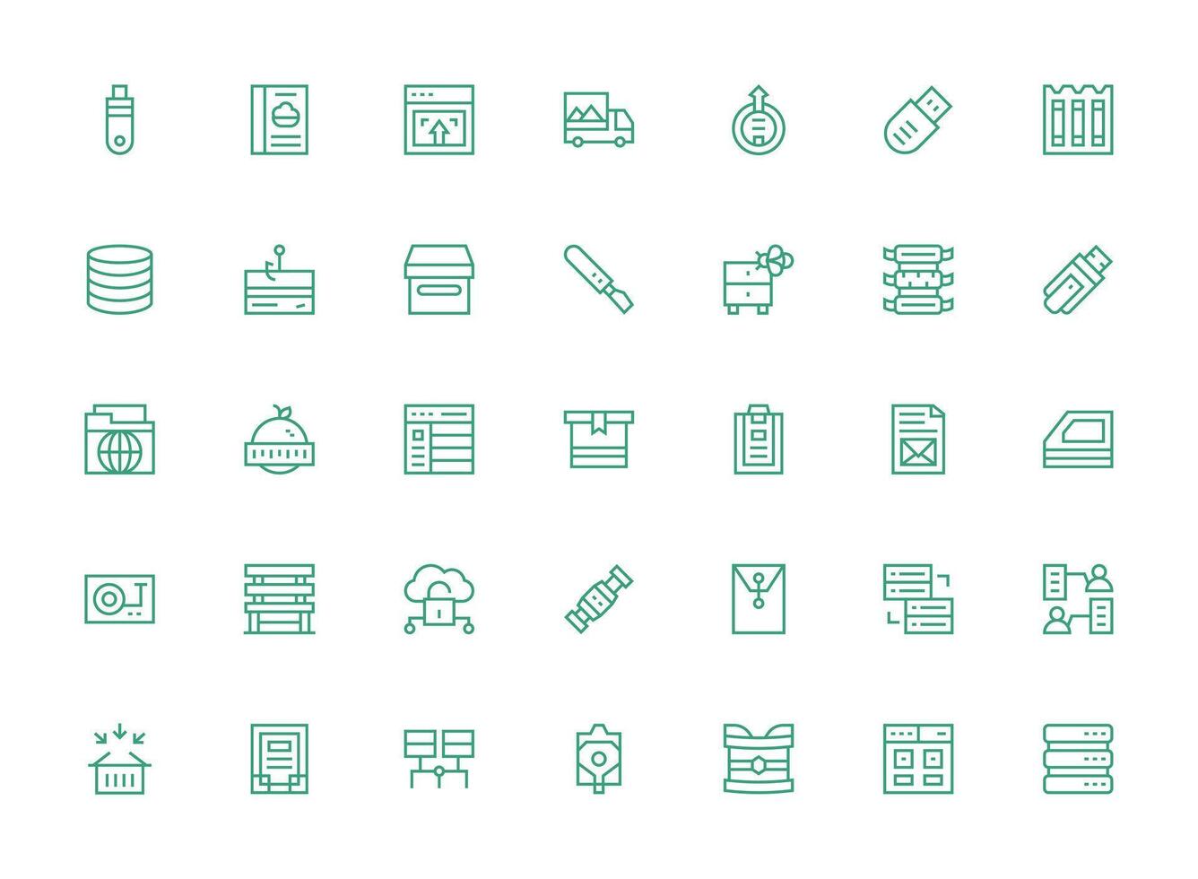 Regular Clean Line Style Data Storage Icons with 35 Vectors Fully Editable Icon Set for Web