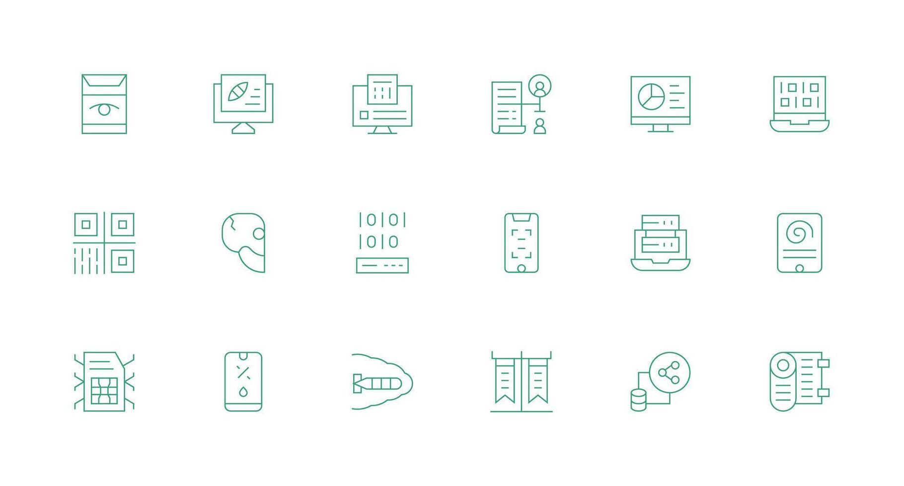 18 Minimal Line Style Icons from Digital Data Collection Simple Icons for Interface and Wireframes vector