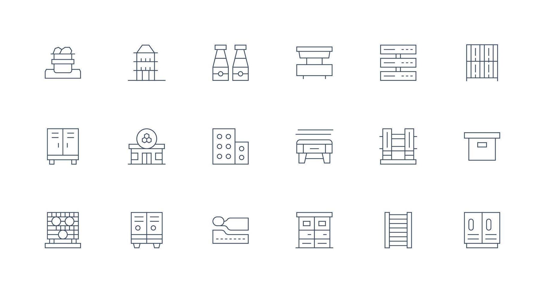 Storage Unit Design Icons featuring 18 in Minimal Line Style Lightweight Icon Series Free Vector