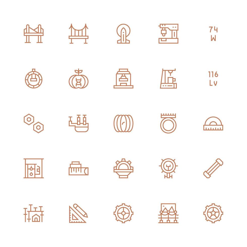 Engineering Set with 25 Medium Stroke Outline Icons Simple Icons for Interface and Wireframes vector