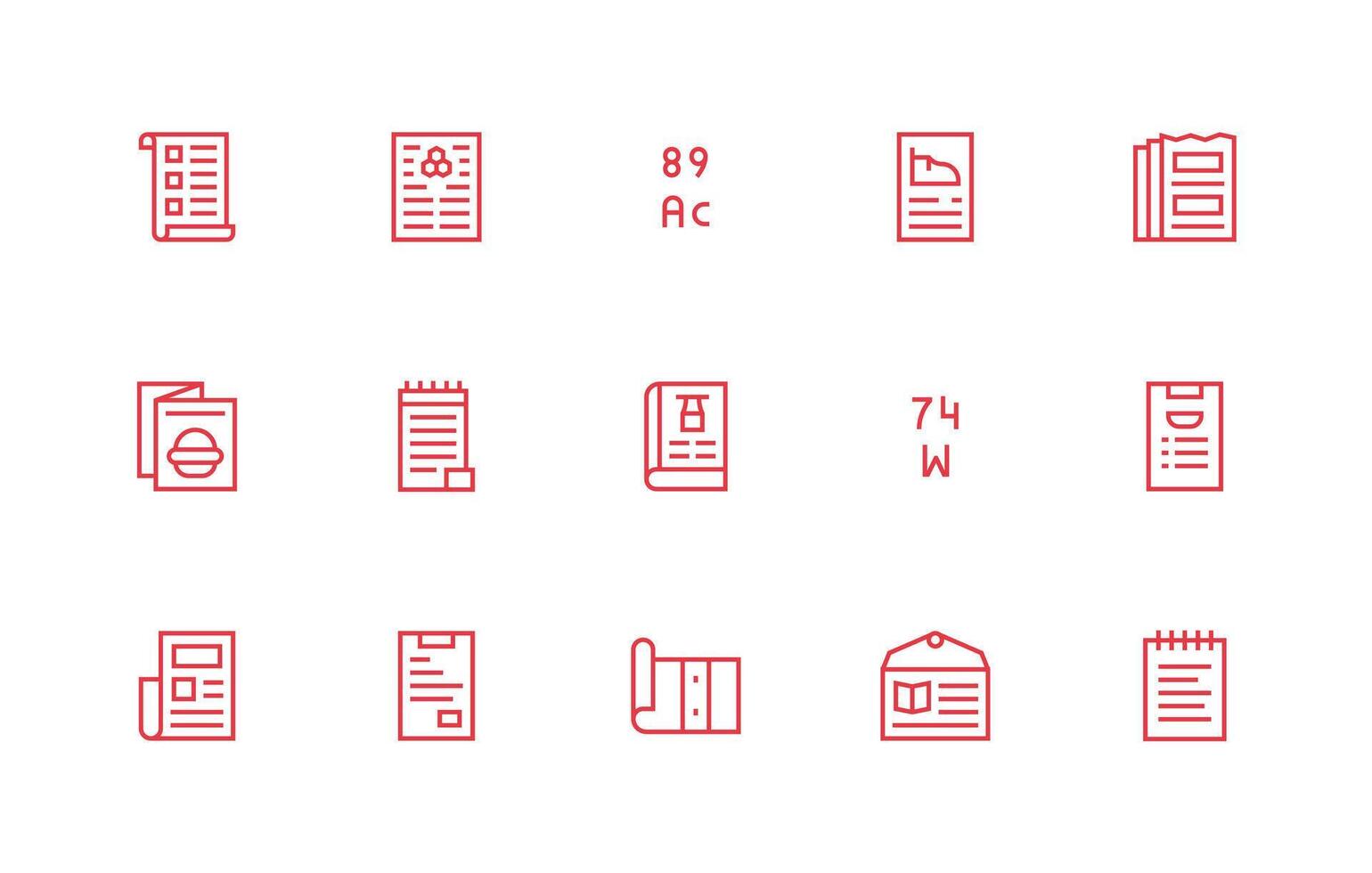 Specifications Design Icons featuring 15 in Regular Line Style Icon Collection Set vector