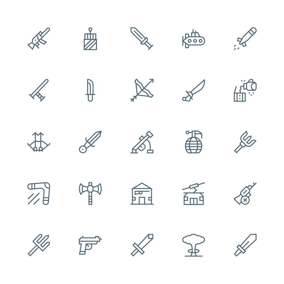 Medium Stroke Outline Icons from Weapon Set with 25 Vectors Balanced Icon Set for Functional Design Free Vector