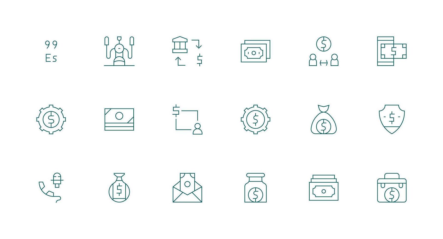 18 Icons for Dollars in Minimal Line Format Balanced Icon Set for Functional Design vector