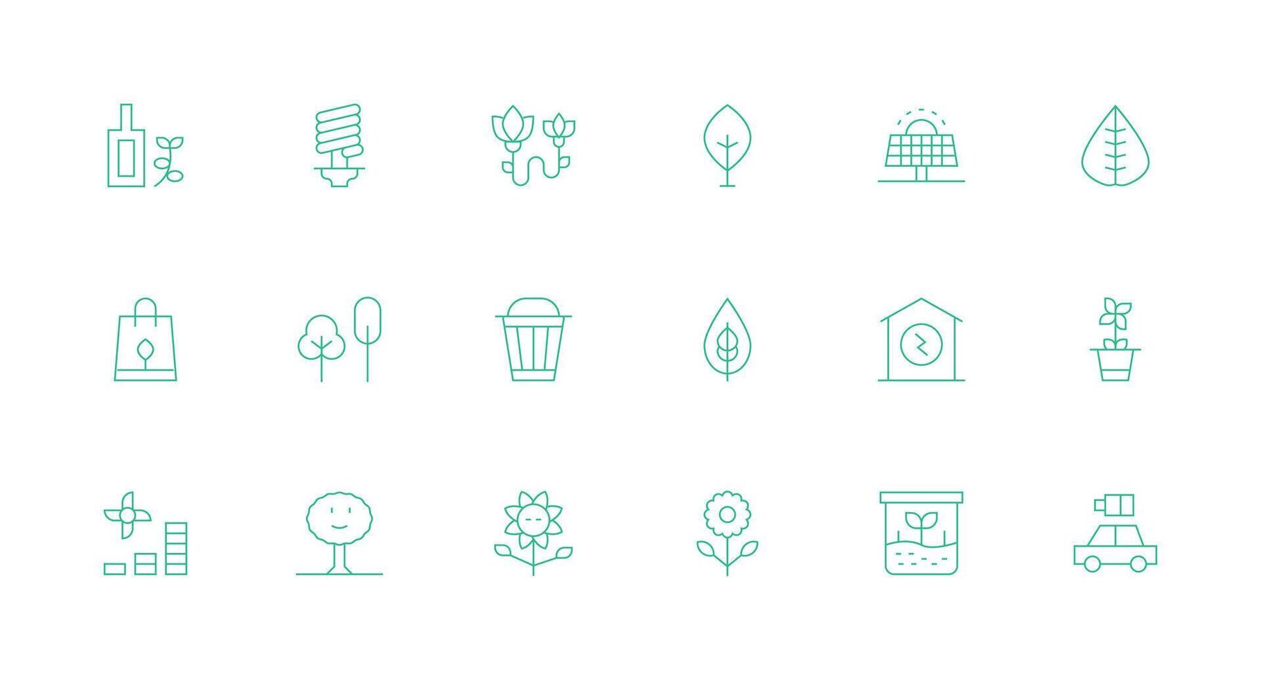 Minimal Line Style Eco Icons with 18 Vectors UI Icon Set