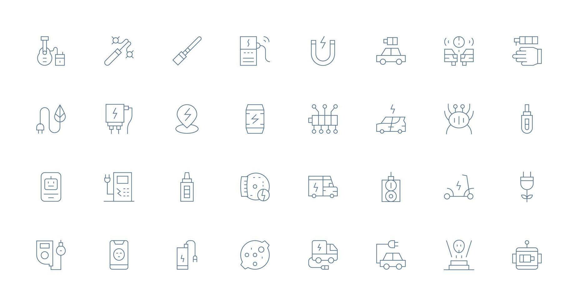 Thin Line Style Charging Icons with 32 Vectors Scalable Icons for Cross-Platform Interfaces Free Vector