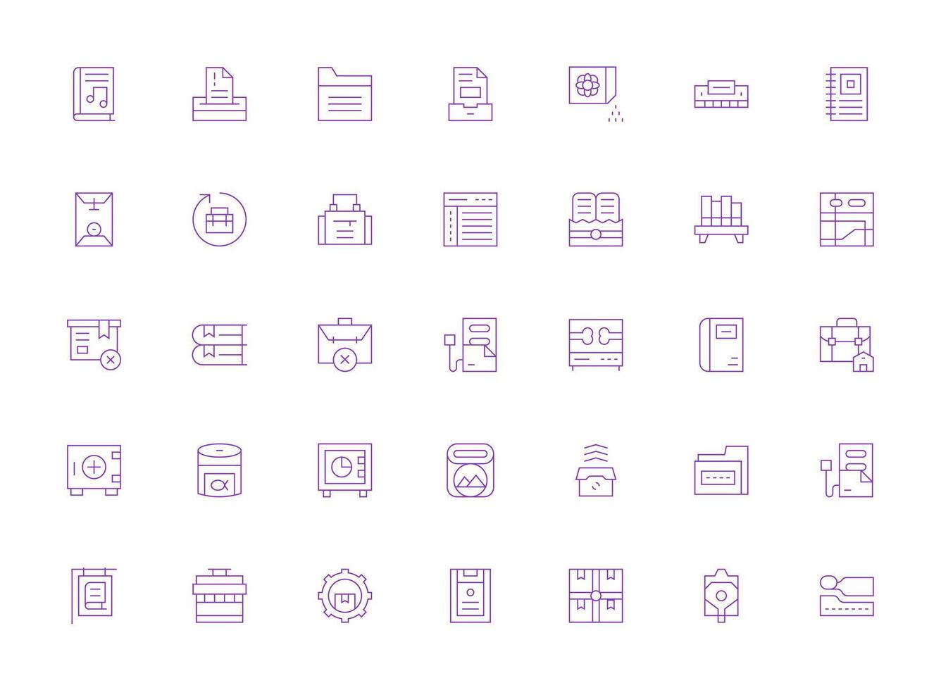 Light Line Icons from Archive Set with 35 Vectors Icon Pack for UI Free Vector