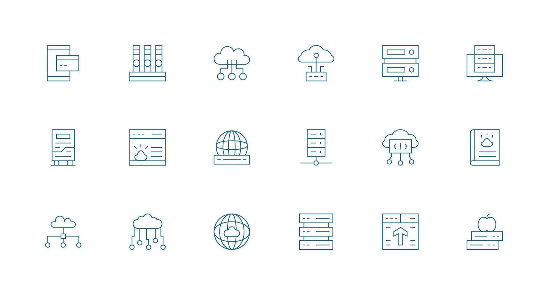Minimal Line Icons from Hosting Set with 18 Vectors Line Icon Collection Free Vector