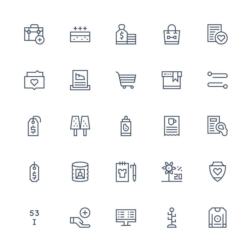 25 Medium Stroke Outline Icons for Item Graphics Complete Icon Set for Mobile Apps vector