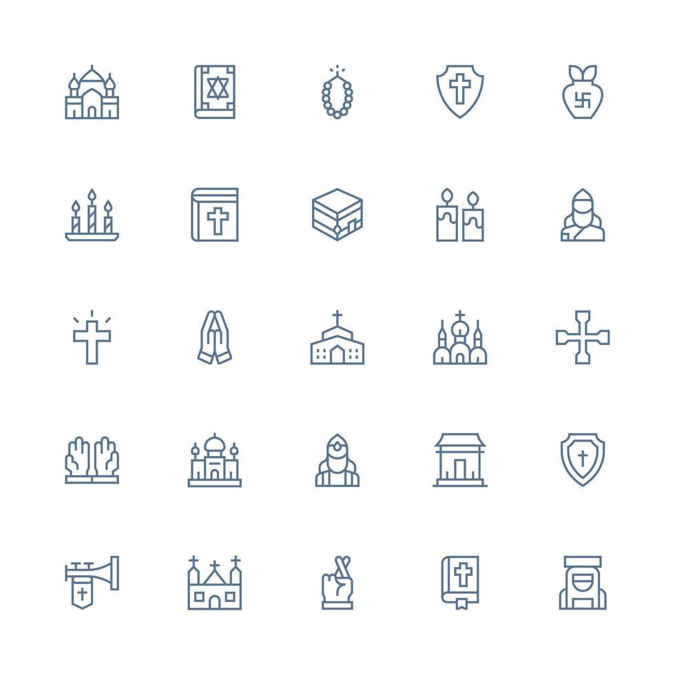 25 Medium Stroke Outline Icons for Faith Graphics Quick Access Icons for UI Development Free Vector