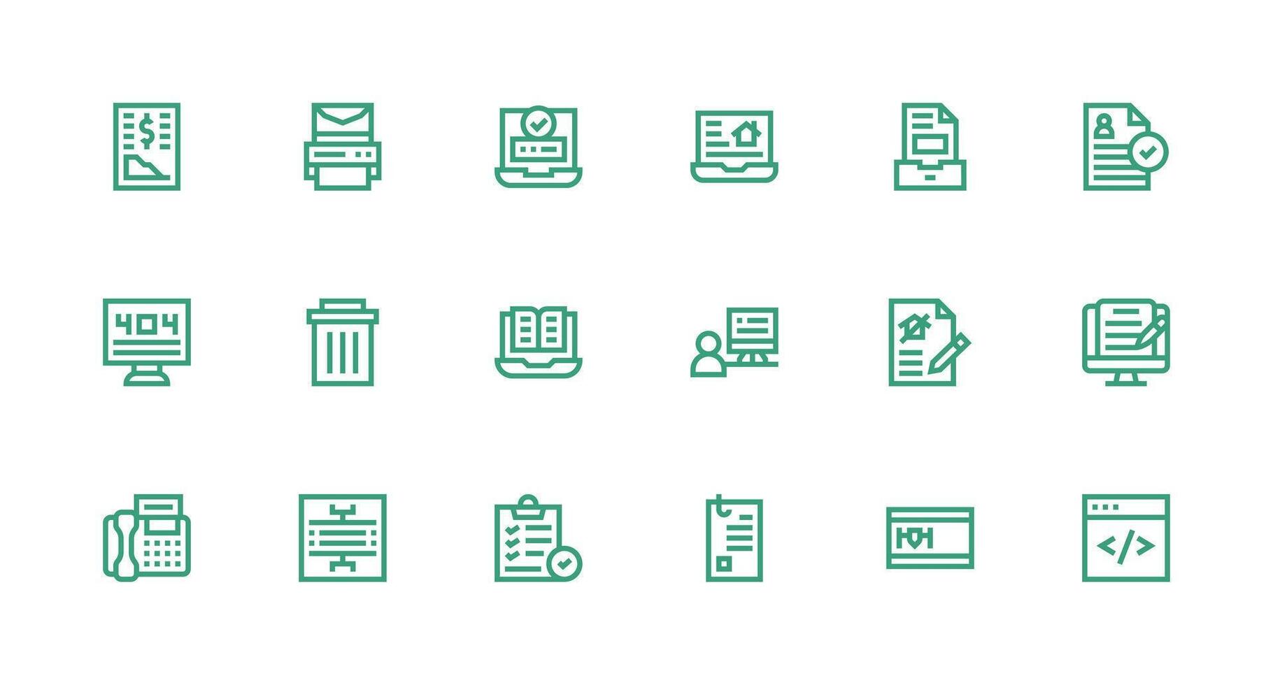 Strong Stroke Line Style Document Icons with 18 Vectors Icon Collection Set Free Vector
