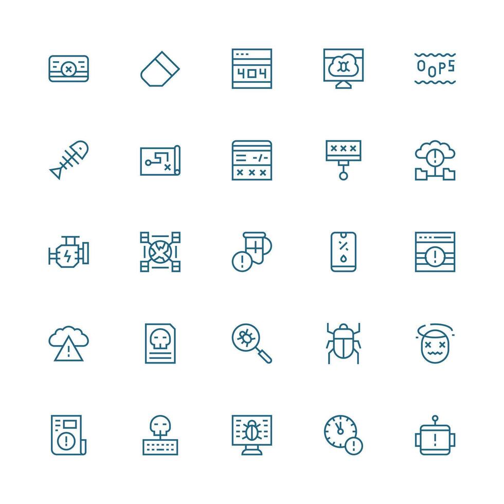 Medium Stroke Outline Style Error Icons with 25 Vectors Icon Pack for UI Free Vector