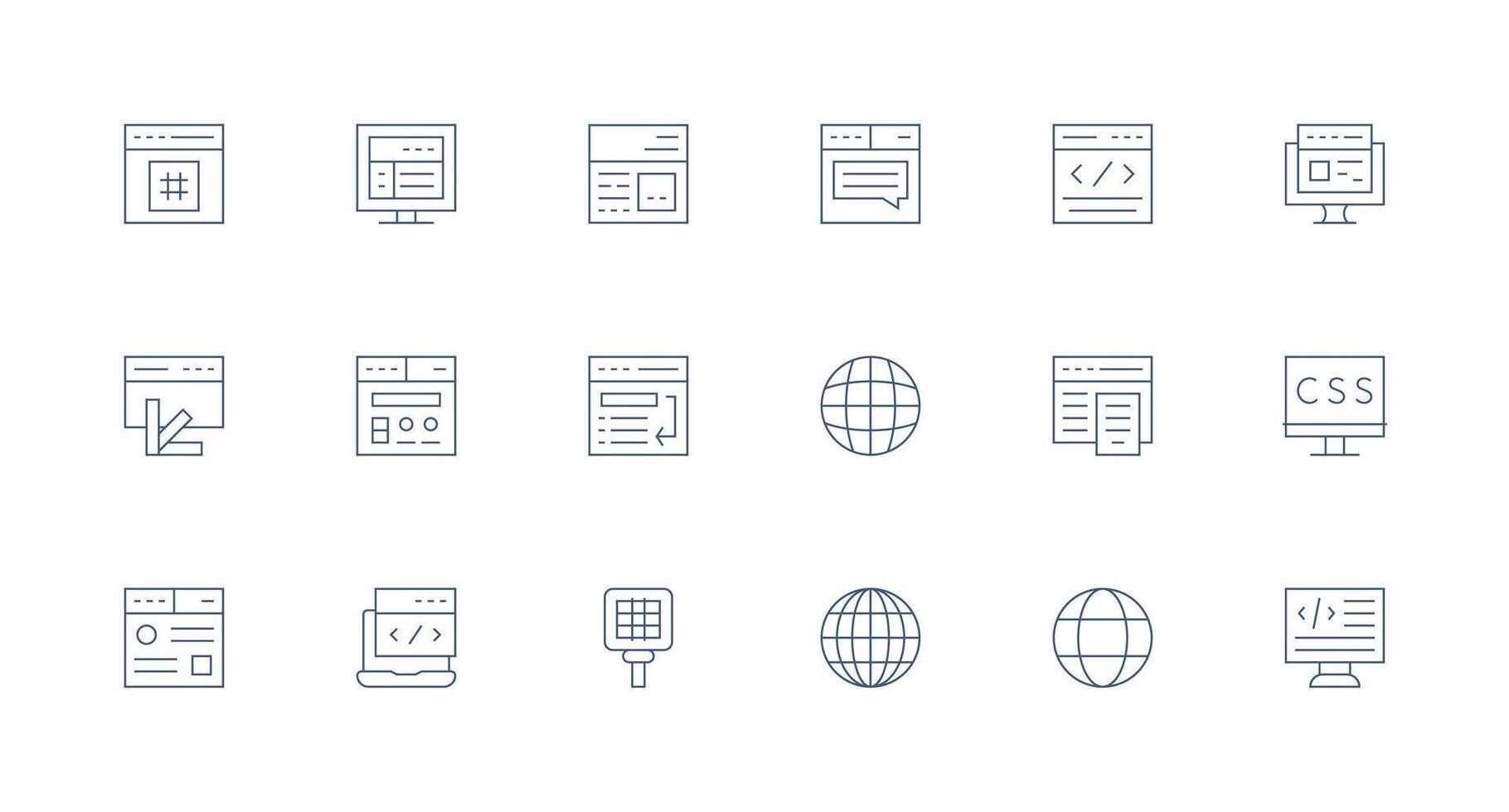 Browser Icon Collection with 18 Minimal Line Designs Balanced Icon Set for Functional Design Free Vector