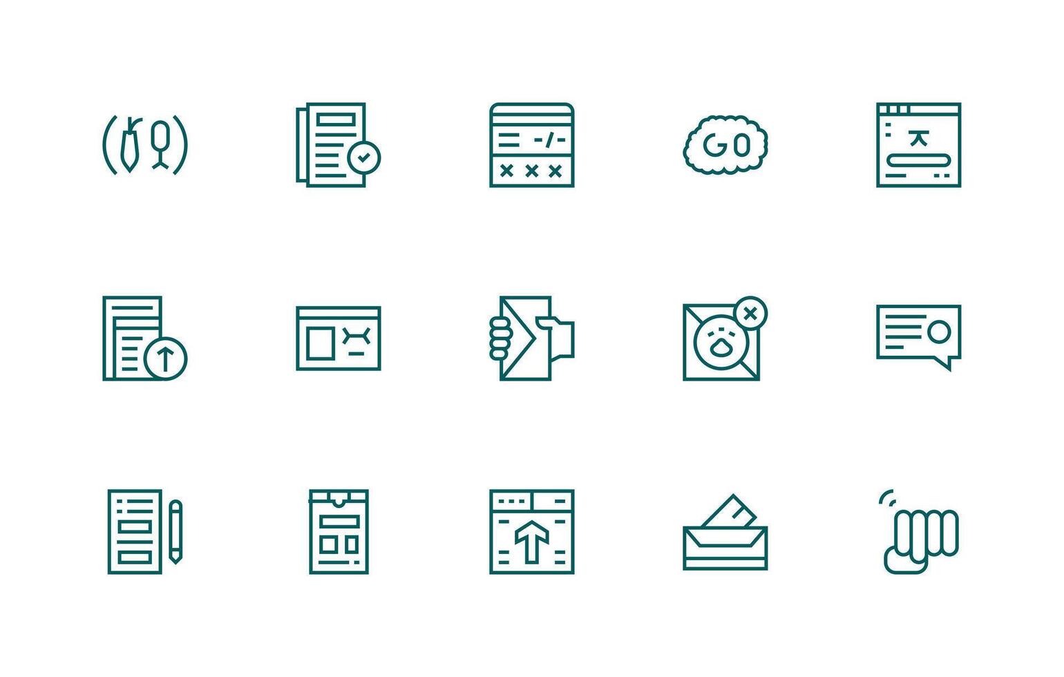 Submit Set with 15 Regular Line Icons All Device Compatible Icon Set vector