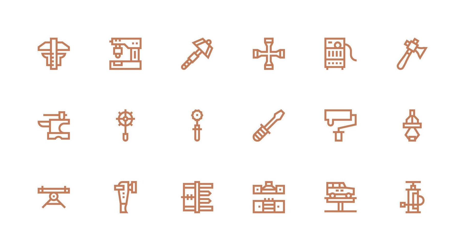 Tooling Set with 18 Strong Stroke Line Icons UI Icon Set Free Vector