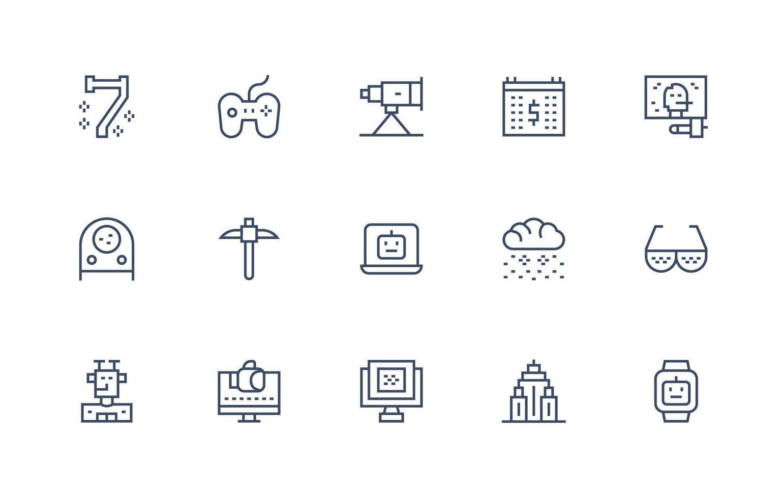 15 Regular Line Icons for Pixelated Graphics Icon Set for Projects vector