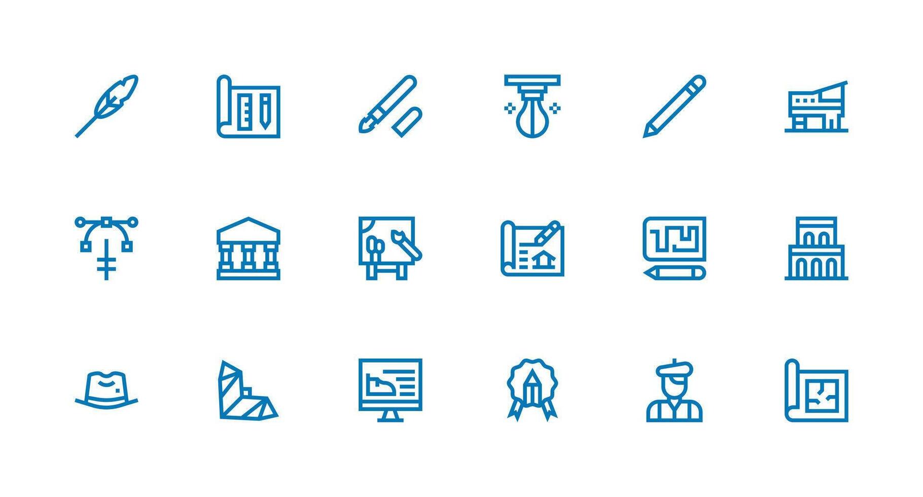 Sketch Icon Set with 18 Strong Stroke Line Graphics Design Ready Icon Set for Teams Free Vector