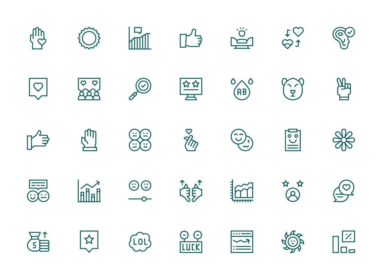 Positive Icon Set with 35 Regular Clean Line Graphics Quick Access Icons for UI Development vector