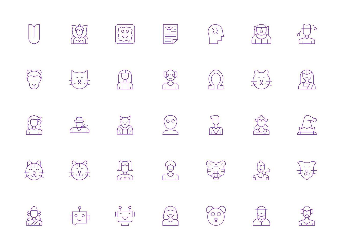 Light Line Icons from Character Set with 35 Vectors Clean Icon Collection for Web Use Free Vector