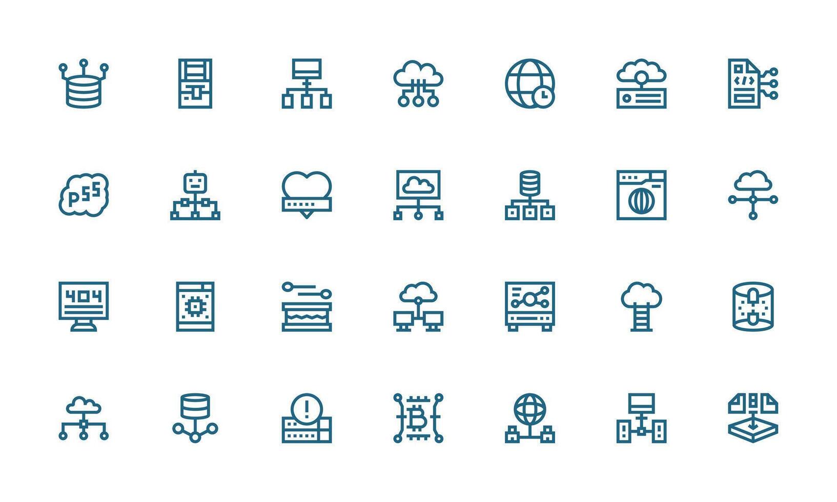 Server Icon Set with 28 Bold Line Graphics Simple Icons for Interface and Wireframes Free Vector