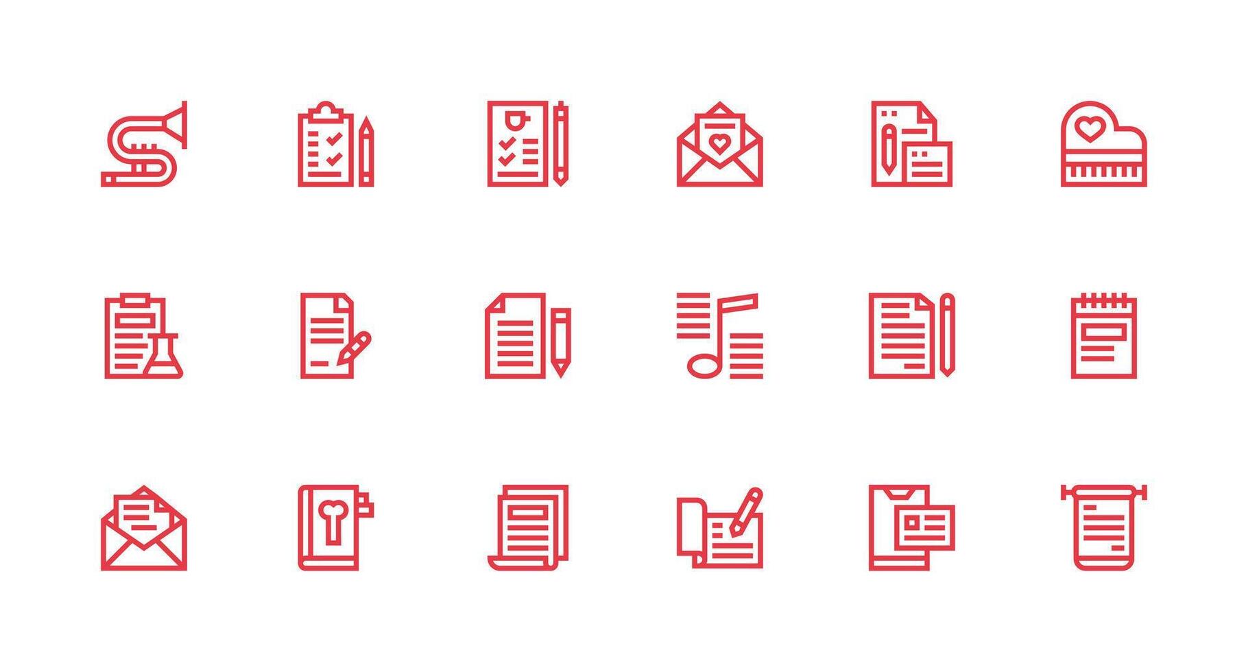 Note Icon Set with 18 Strong Stroke Line Graphics Pixel Perfect Icons for Modern Apps Free Vector