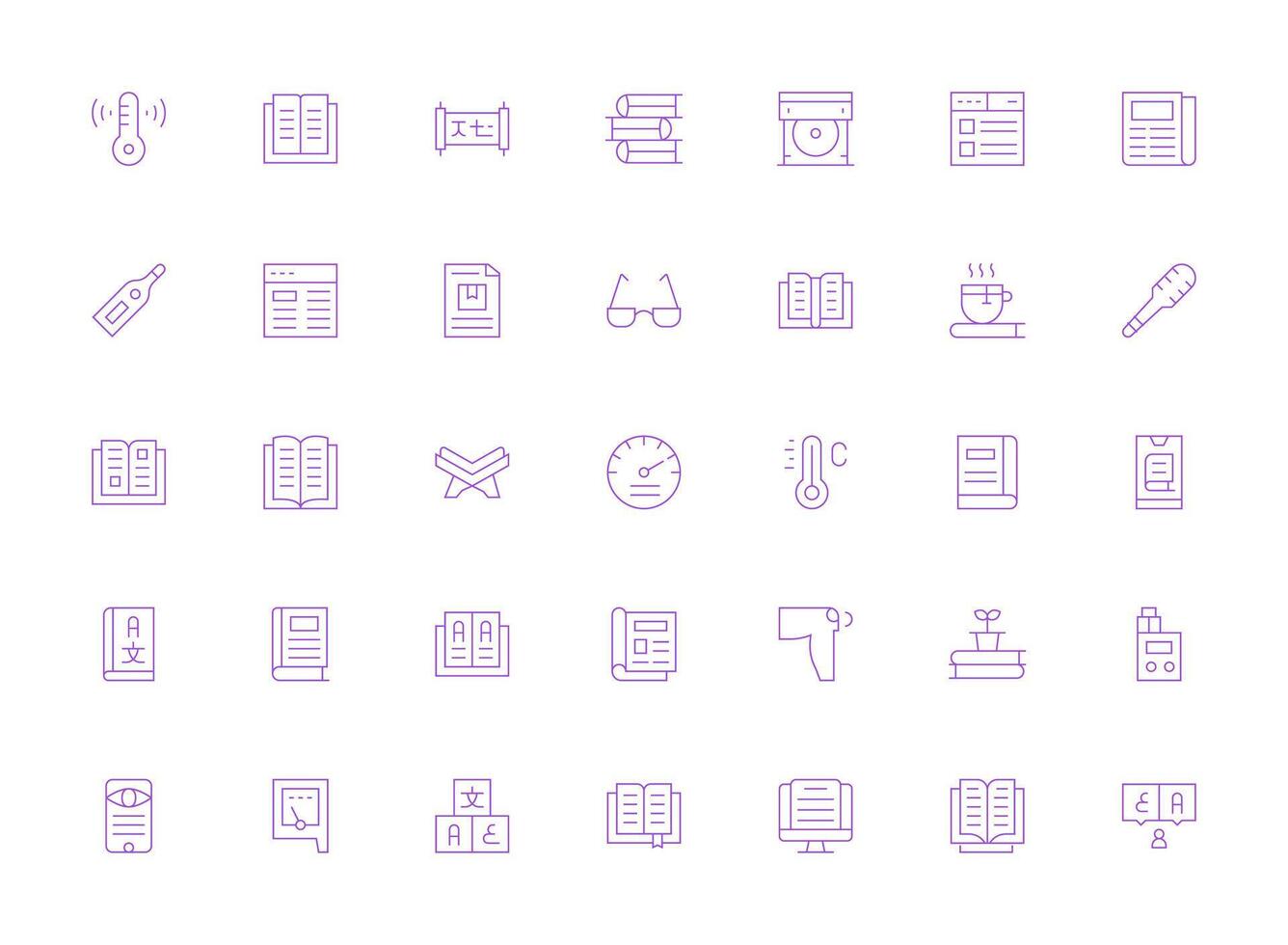 35 Icons for Reading in Light Line Format Pixel Perfect Icons for Modern Apps vector