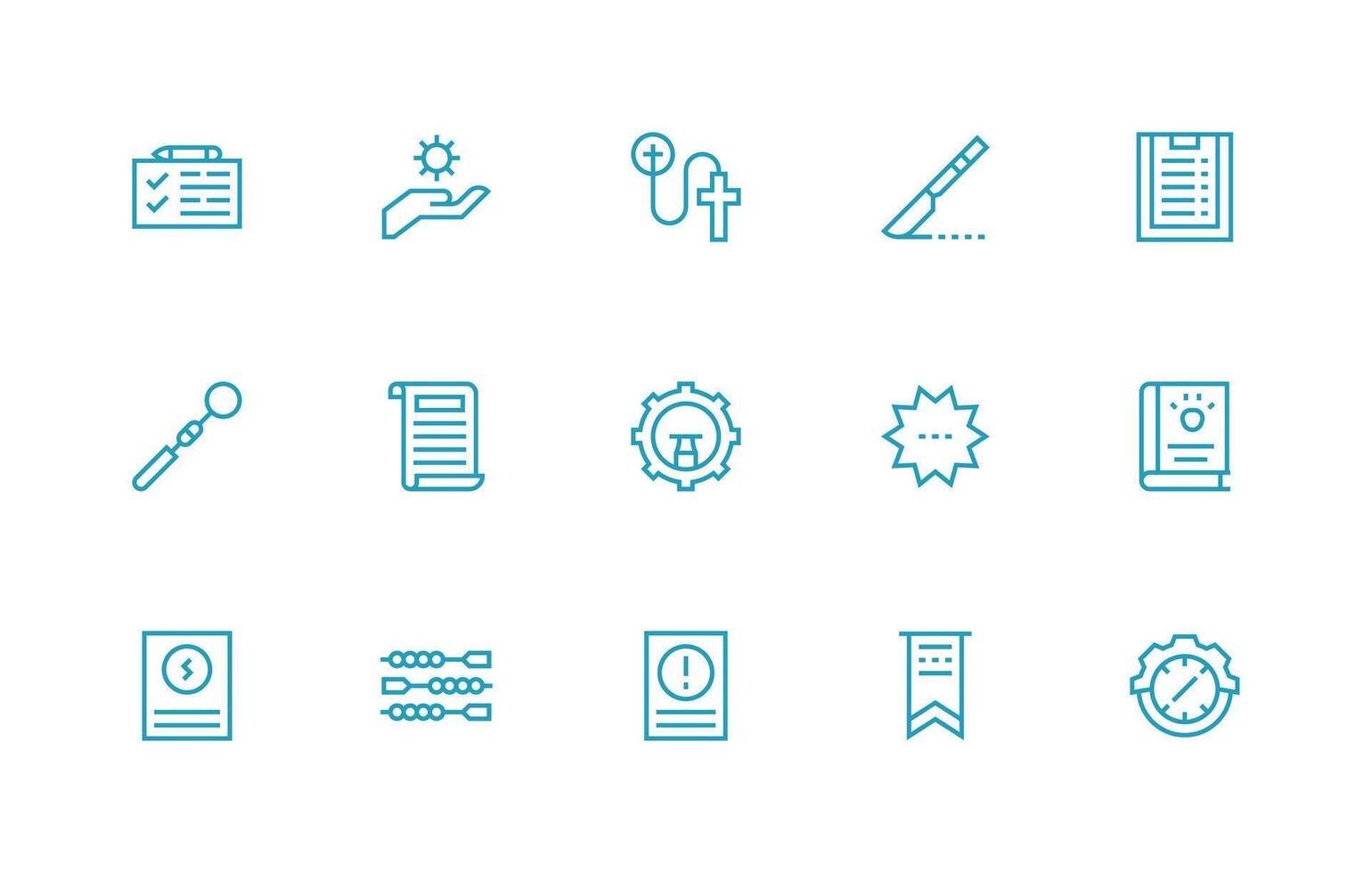 Procedure Icon Set with 15 Regular Line Graphics Simple Icons for Interface and Wireframes vector