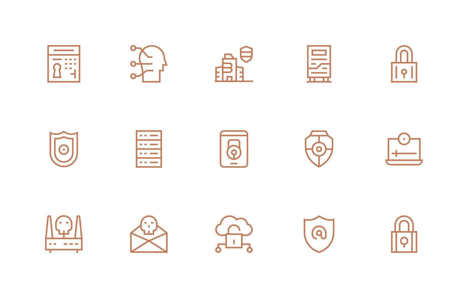 15 Regular Line Style Icons from Cybersecurity Collection Complete Icon Bundle for Web Design vector