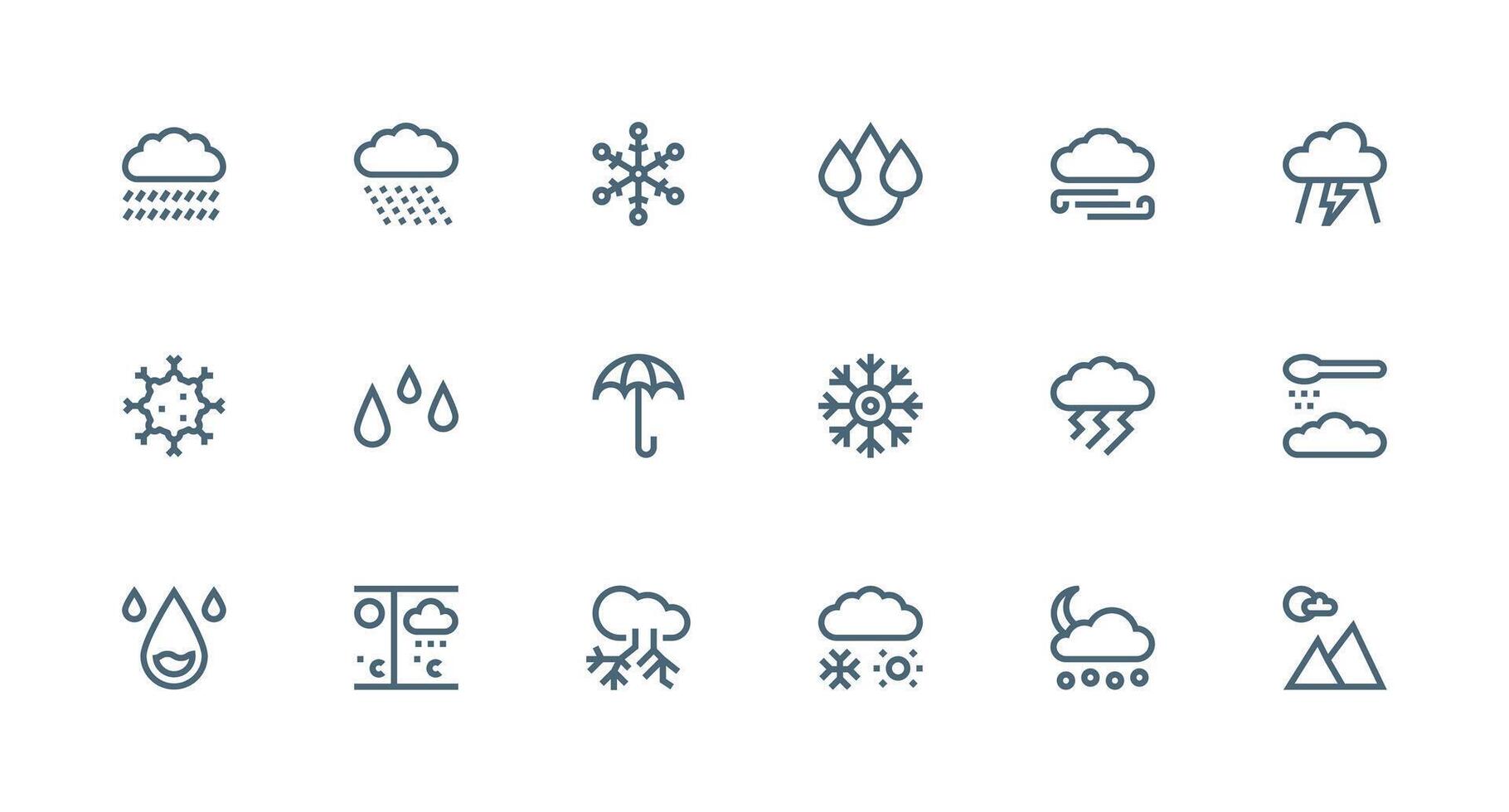 Precipitation Set with 18 Strong Stroke Line Icons Sharp Icons for Presentations Free Vector