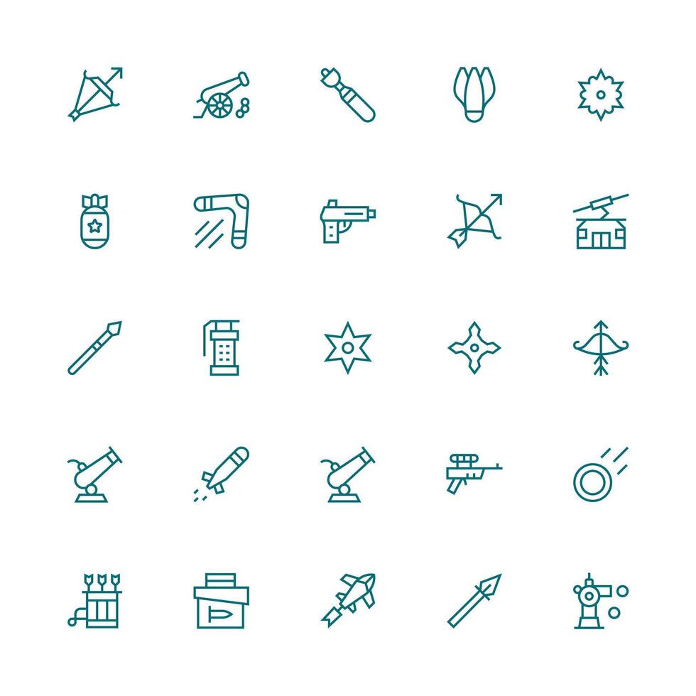Medium Stroke Outline Icons from Projectile Set with 25 Vectors Web Icon Collection Free Vector