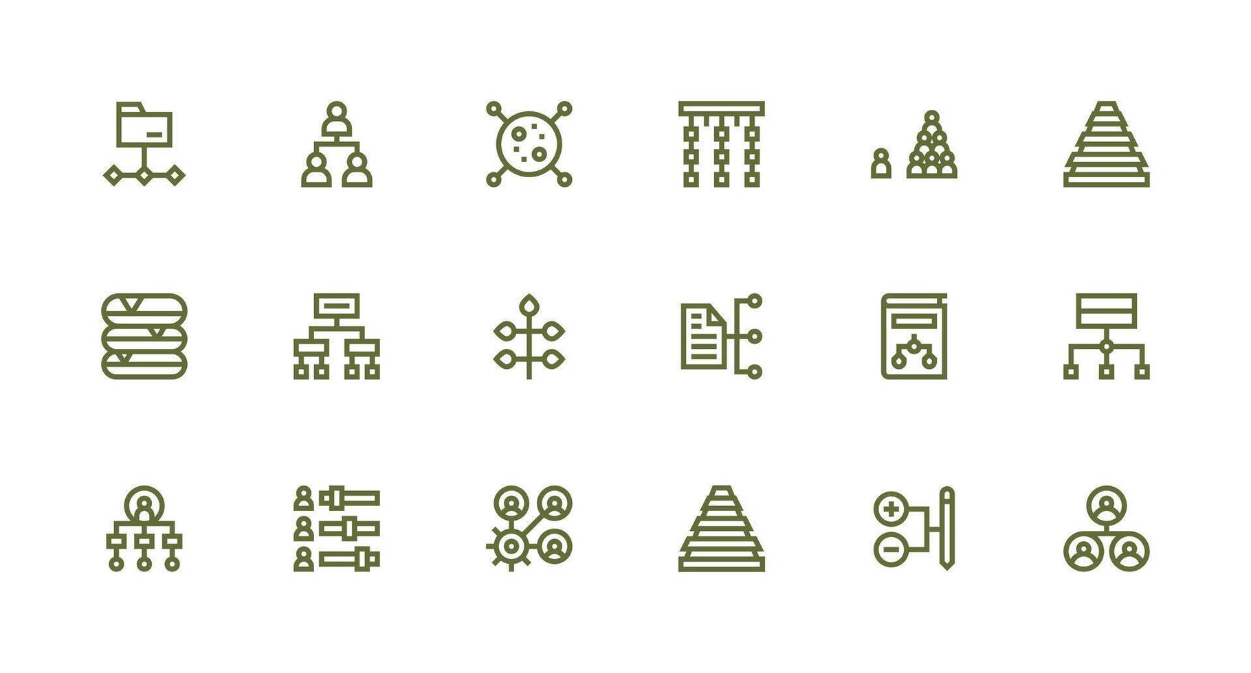 Hierarchy Design Icons featuring 18 in Strong Stroke Line Style Responsive Icon Set for Flexible Layouts vector