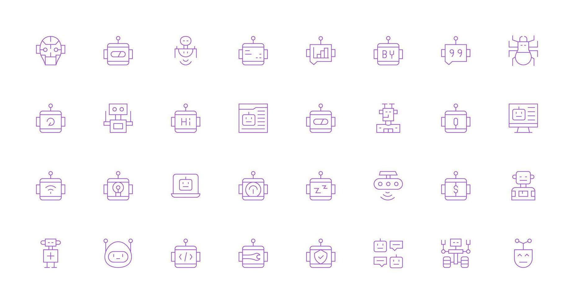 32 Thin Line Style Icons from Robot Collection Icon Pack for Various Themes vector