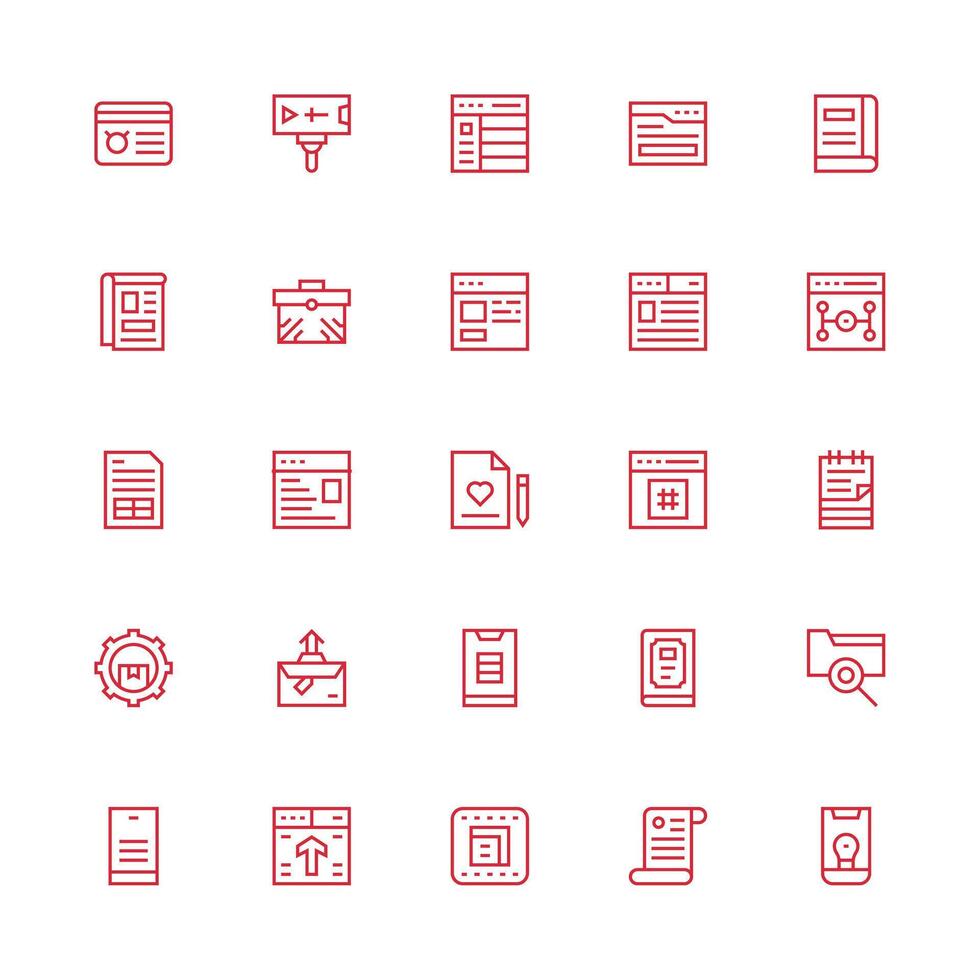 Content Management Design Icons featuring 25 in Medium Stroke Outline Style Clean Icon Set Icon Pack for UI Projects vector