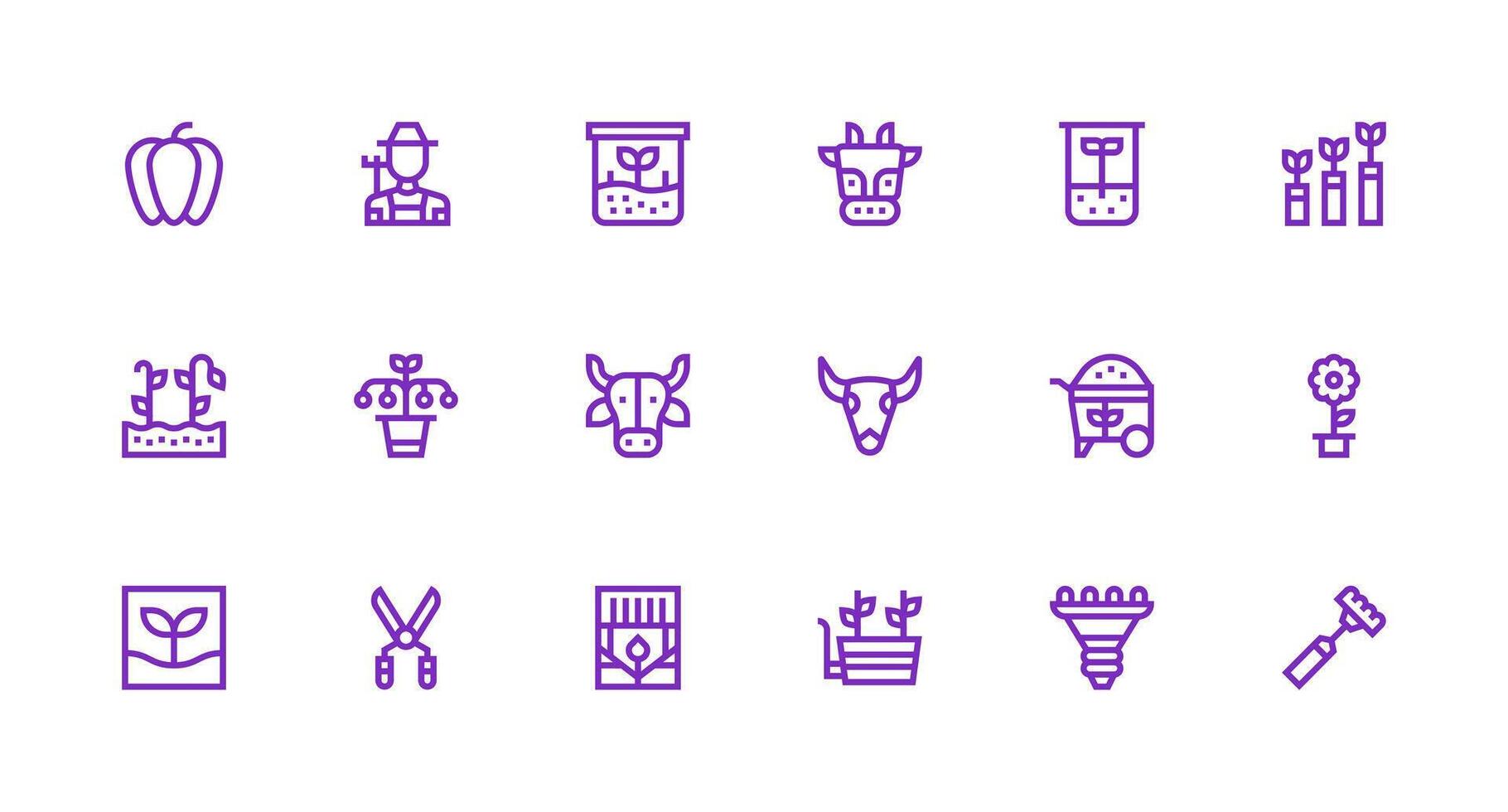 Horticulture Design Icons featuring 18 in Strong Stroke Line Style Clean Icon Set Icon Pack for UI Projects vector