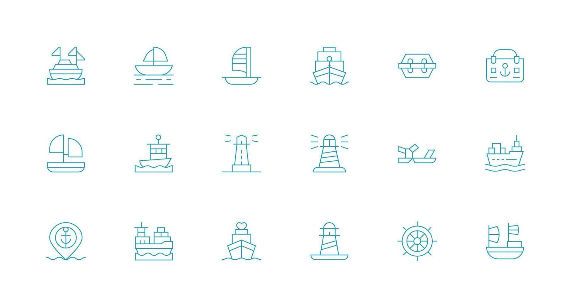 Harbor Icon Set with 18 Minimal Line Graphics Icon Collection Set Free Vector