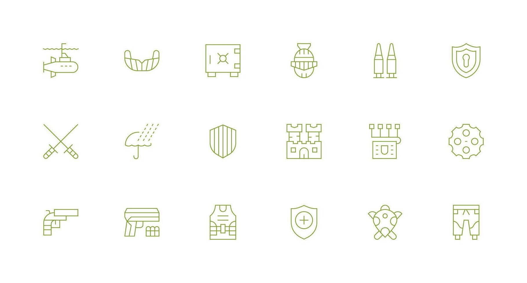 18 Icons for Defense in Minimal Line Format UI Icon Set Free Vector