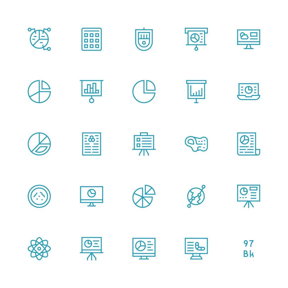 Medium Stroke Outline Style Infographic Icons with 25 Vectors Interface Icon Collection for Daily Projects Free Vector