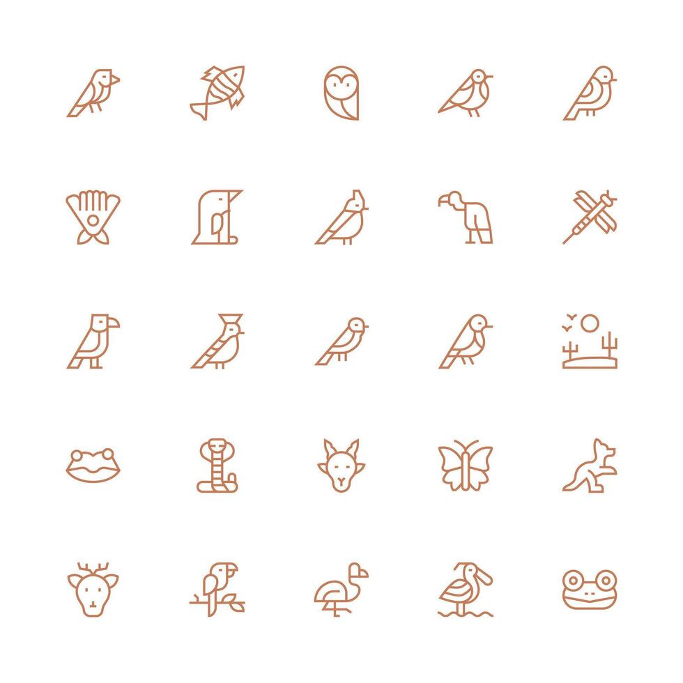 Medium Stroke Outline Style Fauna Icons with 25 Vectors Full Icon Library for UI Designers Free Vector