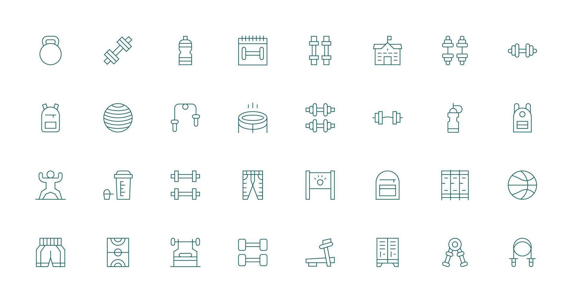 32 Thin Line Icons for Gym Graphics Balanced Icon Set for Functional Design vector