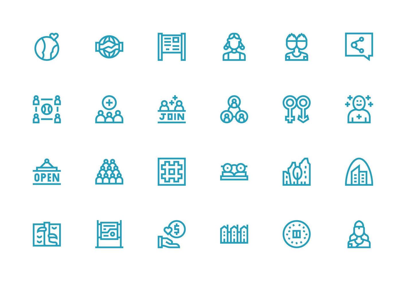24 Thick Line Line Designs for Community Icons Flexible Icon System for Web Interfaces vector