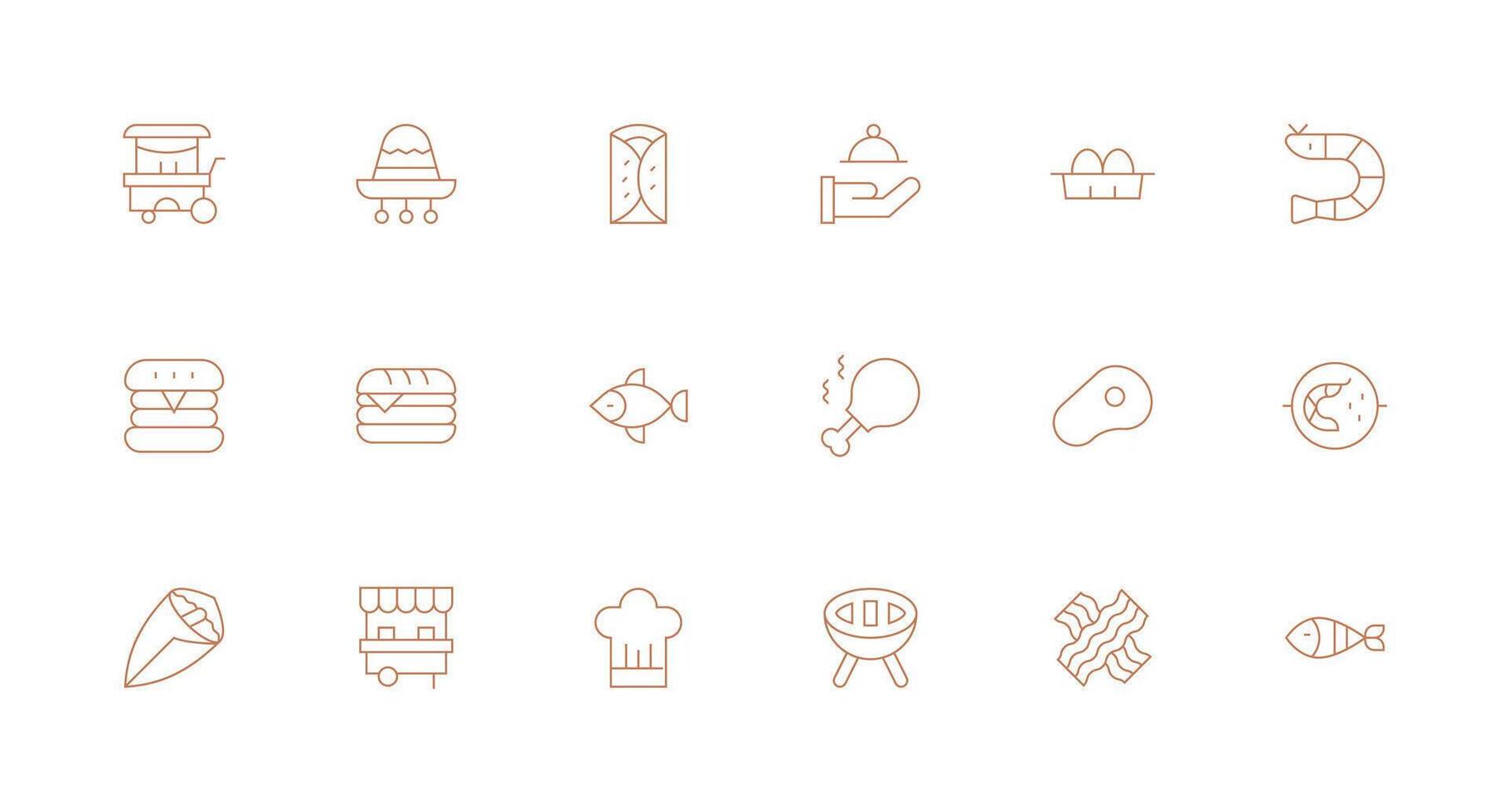 18 Minimal Line Style Icons from Cuisine Collection Essential Icons for Rapid UI Building vector