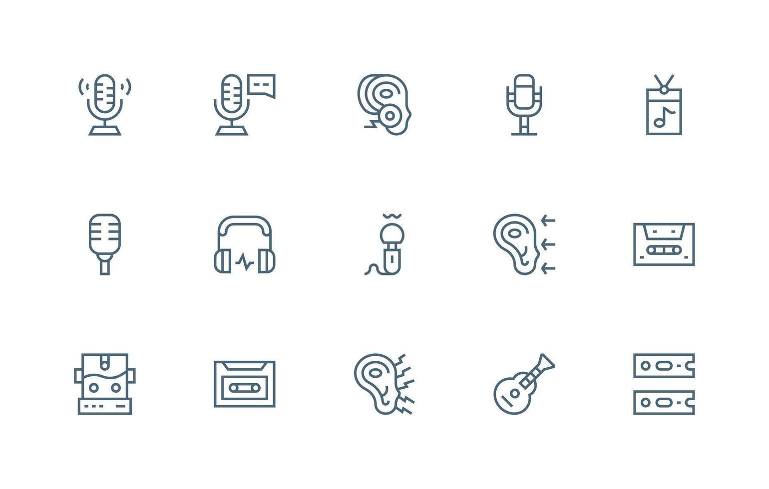 Sound Recording Design Icons featuring 15 in Regular Line Style Style Icon Set vector
