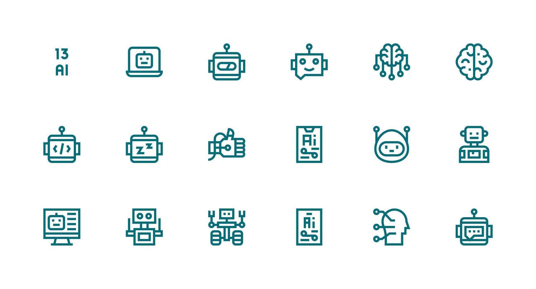 Artificial Intelligence Icon Set with 18 Strong Stroke Line Graphics Customizable Icon Series for Mobile Screens Free Vector