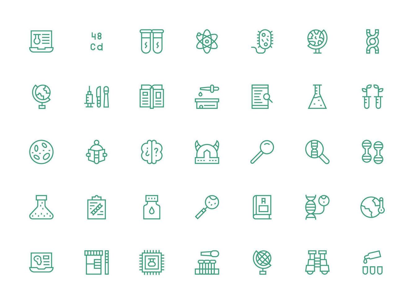 Research Icon Set with 35 Regular Clean Line Graphics Dashboard Icon Series vector