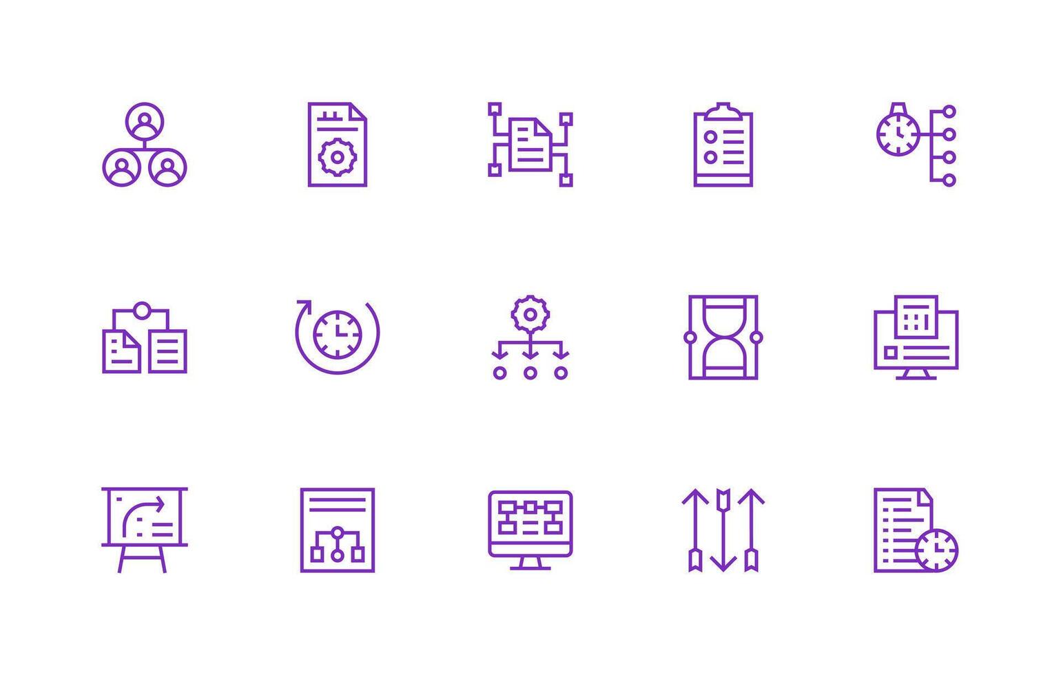 Workflow Icon Collection with 15 Regular Line Designs Style Icon Set vector