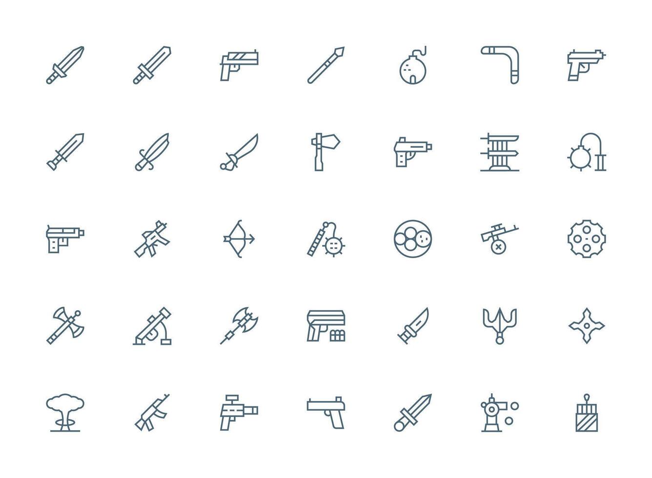 Regular Clean Line Icons from Weapon Set with 35 Vectors All Device Compatible Icon Set Free Vector