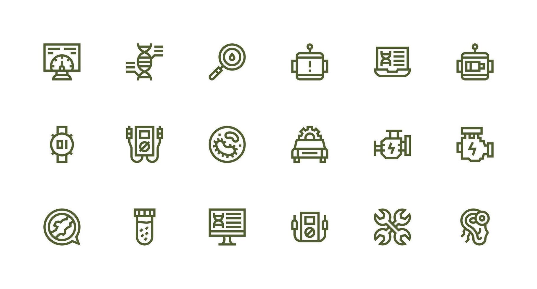 Diagnostics Icon Collection with 18 Strong Stroke Line Designs Balanced Icon Set for Functional Design Free Vector
