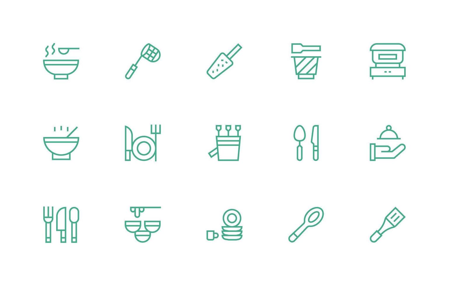 Dishware Set with 15 Regular Line Icons Well-Structured Icons for Creative Use vector