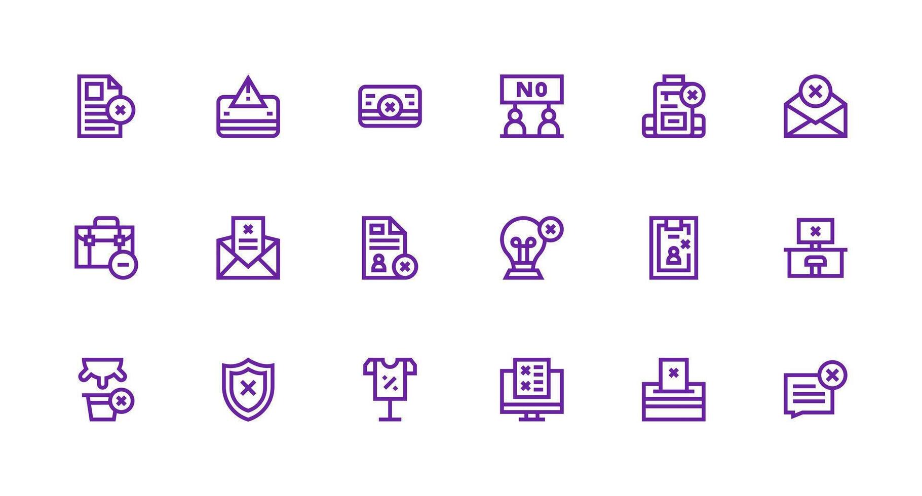 18 Strong Stroke Line Icons for Rejected Graphics Quick Access Icons for UI Development vector